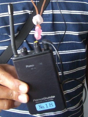 美ら海水族館スタッフの案内をスピーカーを渡されますのでイヤホンで聞きながら見ていくツアーです。