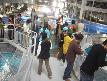 この水槽は、その名の通り「タッチ=触る」生き物たちを触る事ができるプールになっています。
