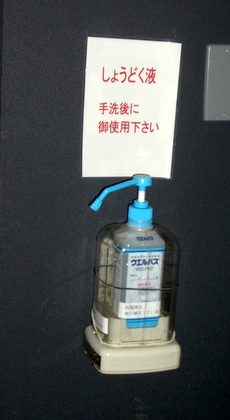 いろいろ機械をタッチする場所には消毒液