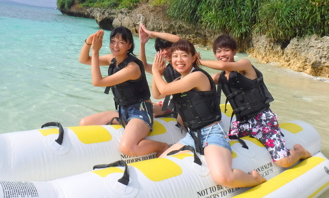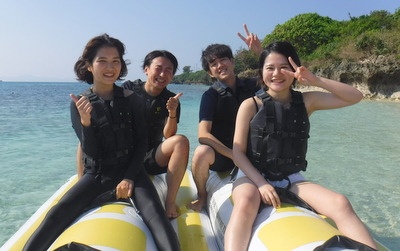 バナナボートやシュノーケルなどを体験しては沖縄の海を