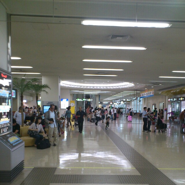 那覇空港でお客様を待っています