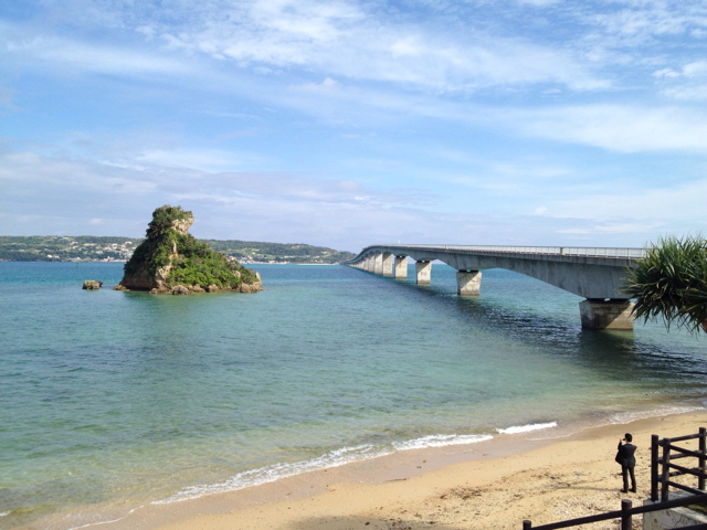 曇りだったので、遠くからはわかりにくいですが、古宇利大橋を渡って