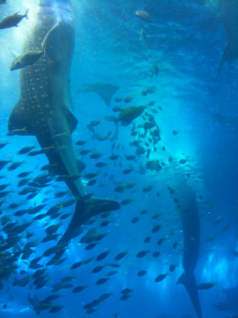 今日は美ら海水族館で餌付けを見学しました。