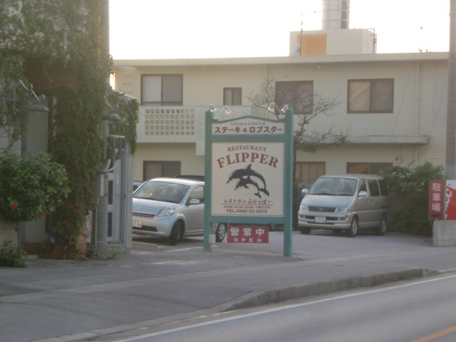 今は名護市にある老舗レストランの「フリッパー」で観光タクシーのお客様がお食事中です。