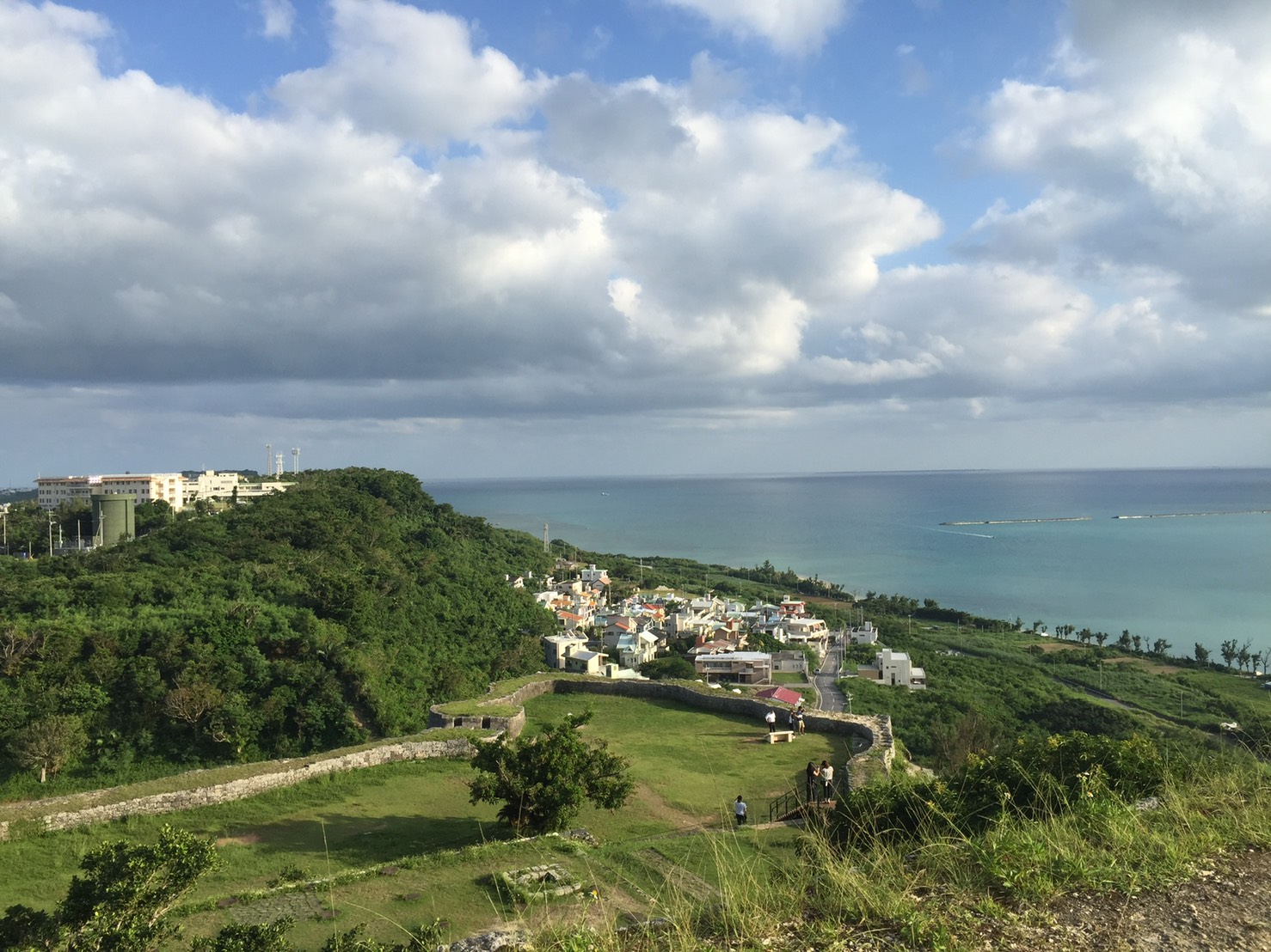 海中道路から向こう側の島々まで見渡せて、うるま市方面の街