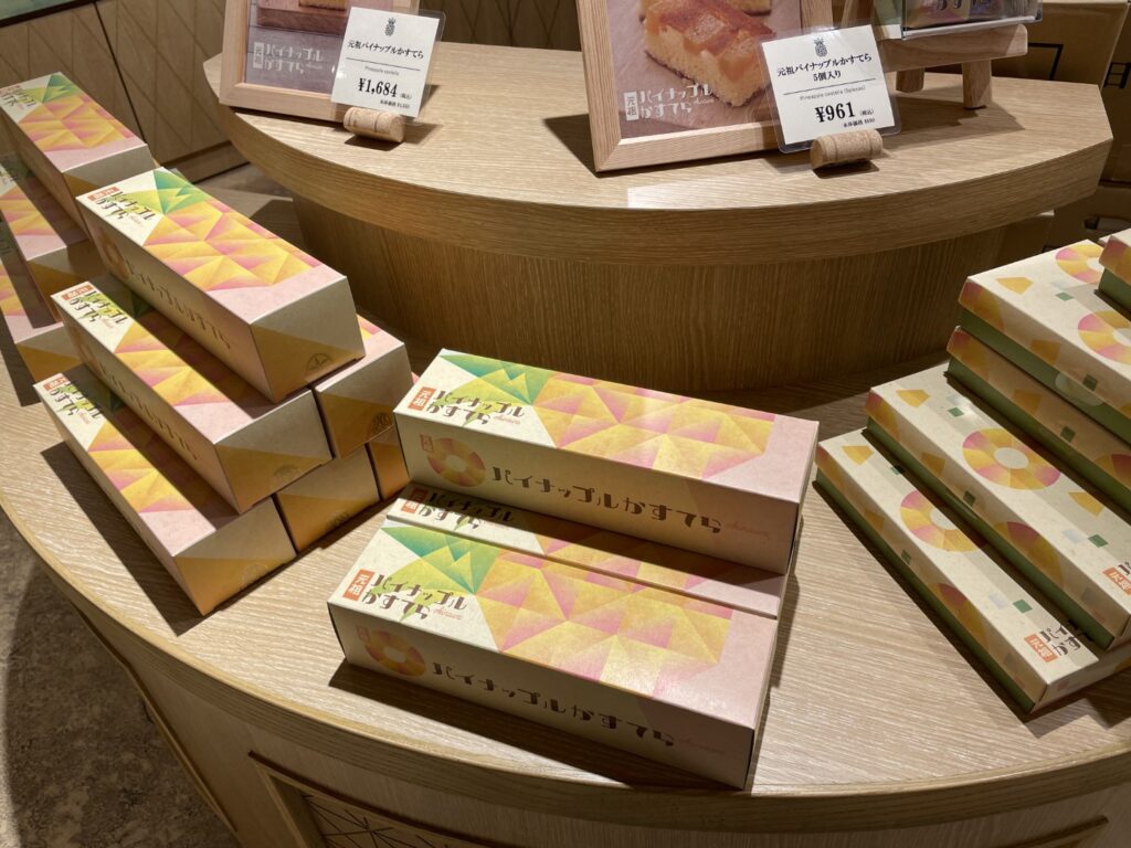パイナップルかすてらは試食コーナーもあります