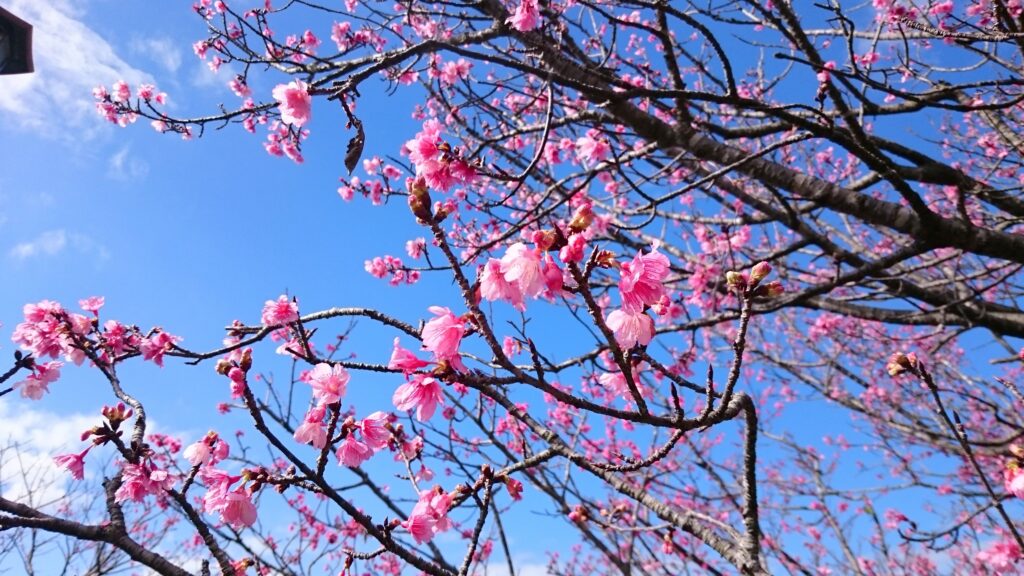 沖縄では、1月から2月にかけて桜の花が咲き始めます。特に本部町や今帰仁村の桜は、日本一の開花となり、1月下旬から2月には見ごろを迎えます。