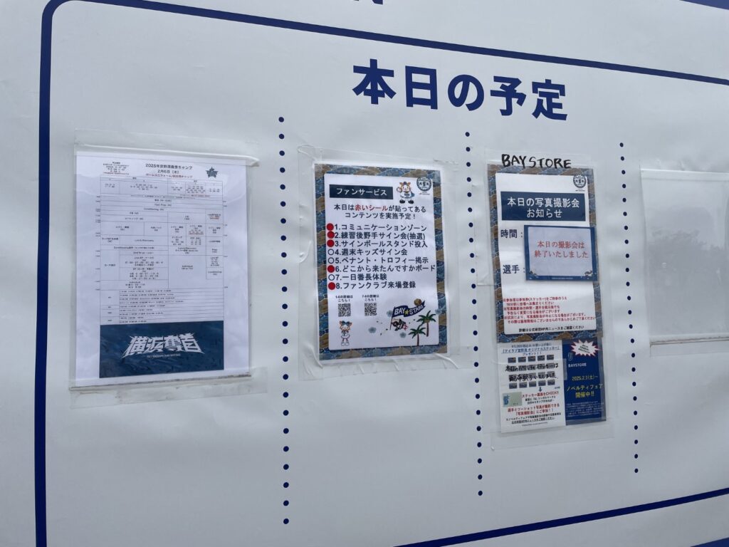 「本日の予定」が貼り出されていたりとファンにとっても親切ですね