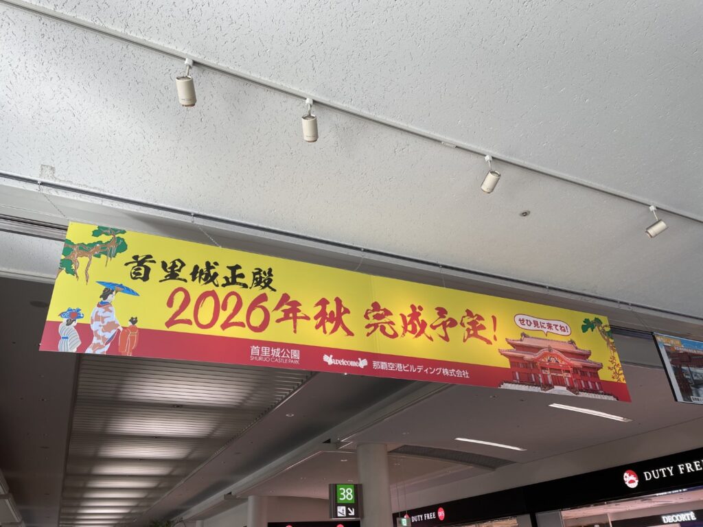 那覇空港でもこのように、正殿の完成がもう少しであることをお知らせする看板も設置されていました