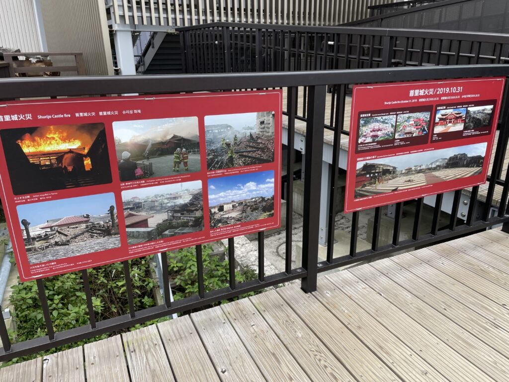 2019年の火災で正殿をはじめとする多くの建物が焼失してしまいましたが、その時の首里城の様子もパネルで説明されていました