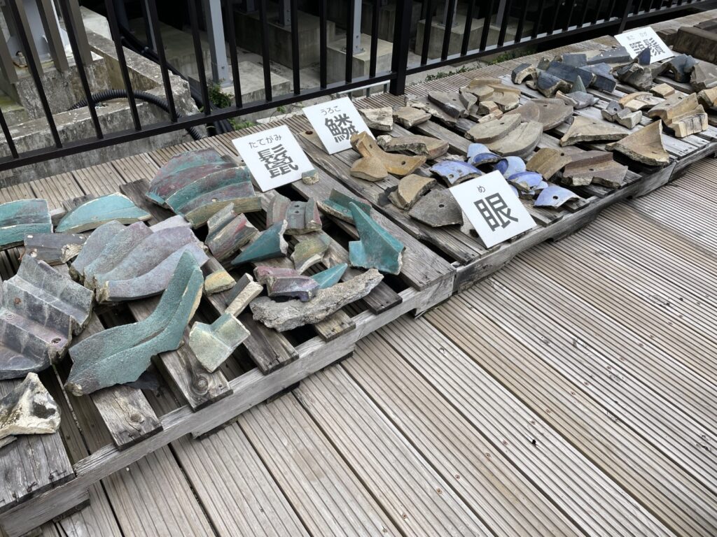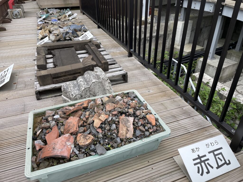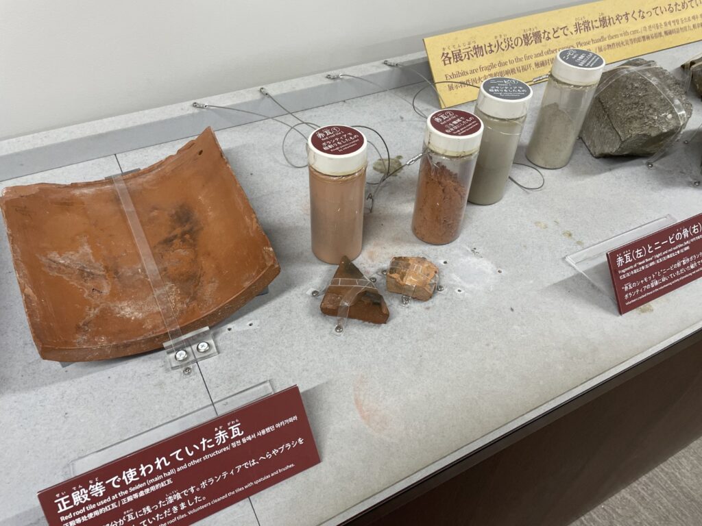 復元に使用されるの赤瓦と、これまでに使用されていた赤瓦の展示もありました