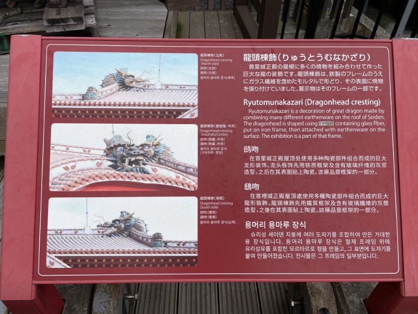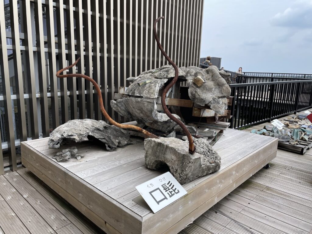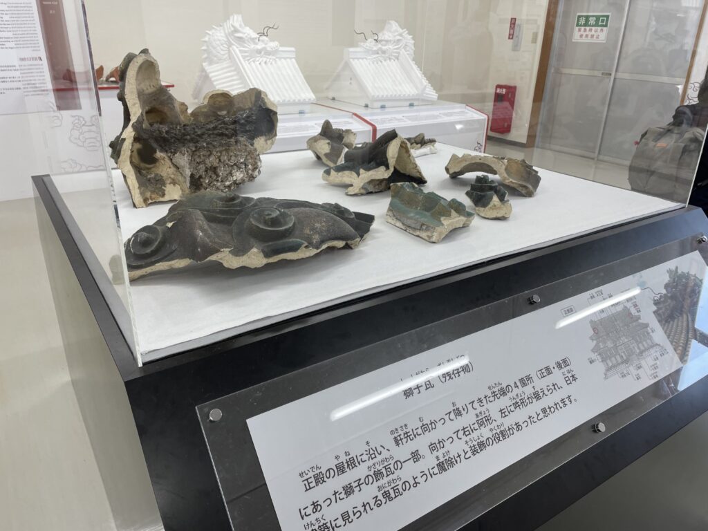 首里城火災で焼失した龍頭棟飾の焼け跡が展示されており、火災の被害の大きさを実感できます。