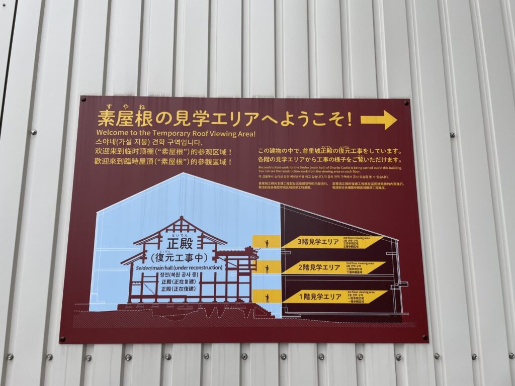 現在復元中の首里城には、1階~3階部分の素屋根の見学エリアが設けられており、工事の進捗状況を間近で観察できます。
