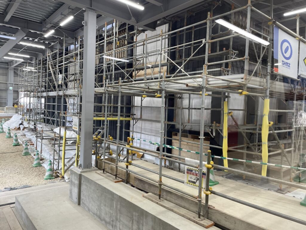 工事現場の基礎部分を見学できるエリア。復元作業の基礎工事や資材の運び込みの様子を確認できます。