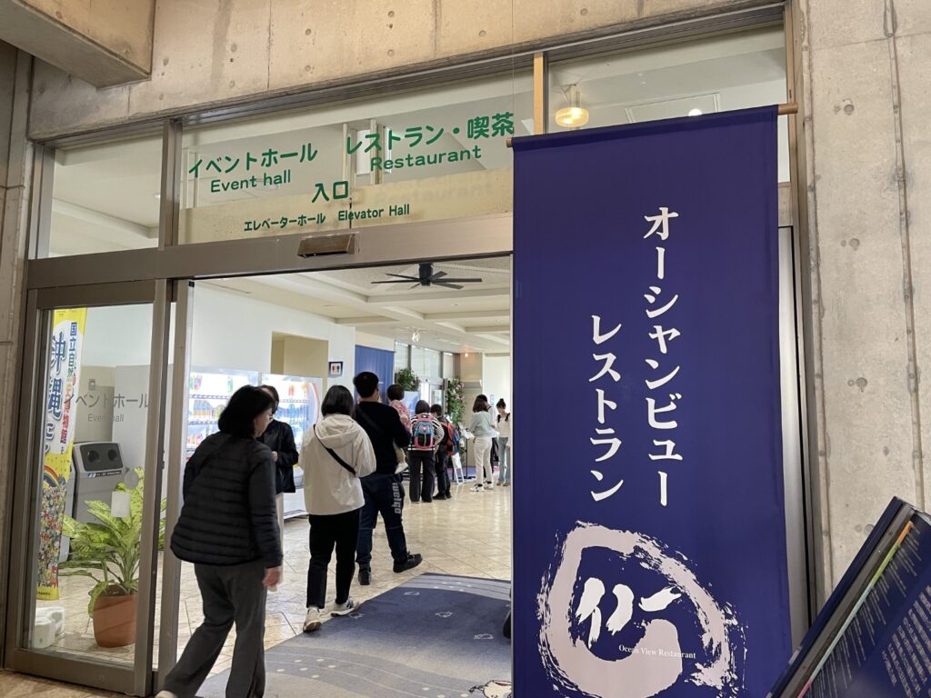 水族館の敷地内にある「オーシャンビューレストラン イノー」は、絶景を眺めながら食事ができるレストラン。