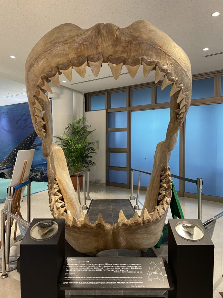 - メガロドンの歯: 約2600万年前に生息していた巨大サメ「メガロドン」の歯の化石を展示。現代のホオジロザメの何倍もの大きさがあり、その迫力に驚かされます。