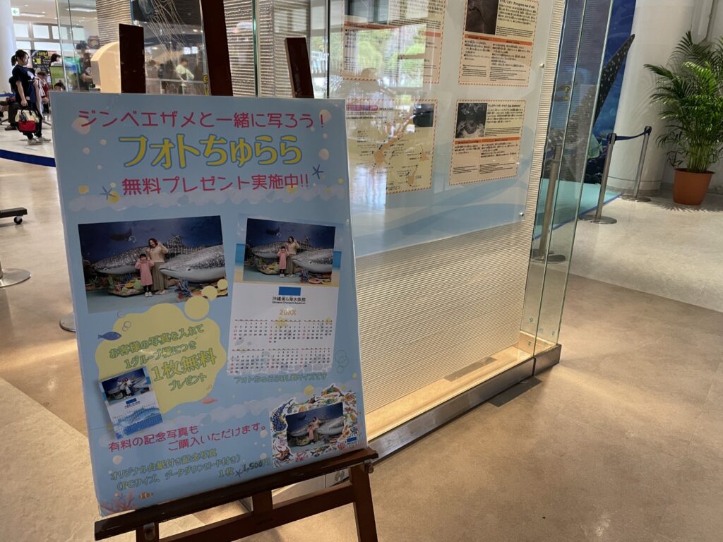- フォトちゅらら(フォトサービス):ジンベエザメの模型があって、そこで記念写真を撮ってもらうことができます