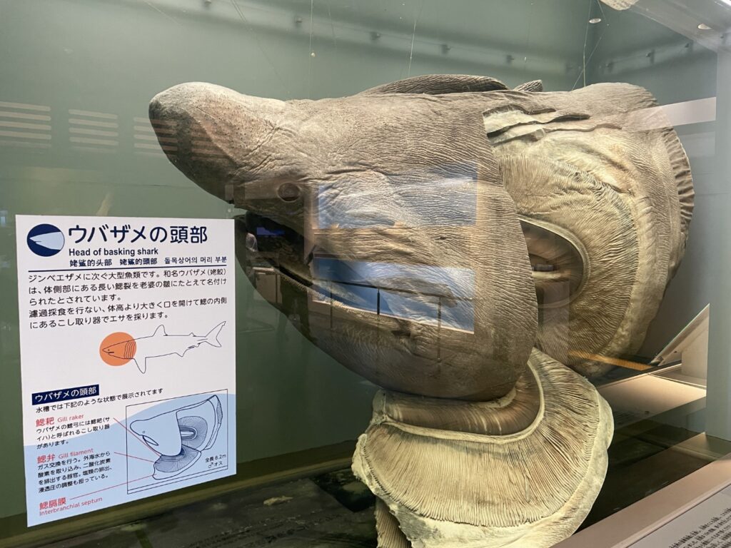- ウバザメの頭部: 世界最大級のプランクトン食サメであるウバザメの頭部模型。実際の大きさを知ることで、そのスケール感を実感できます。