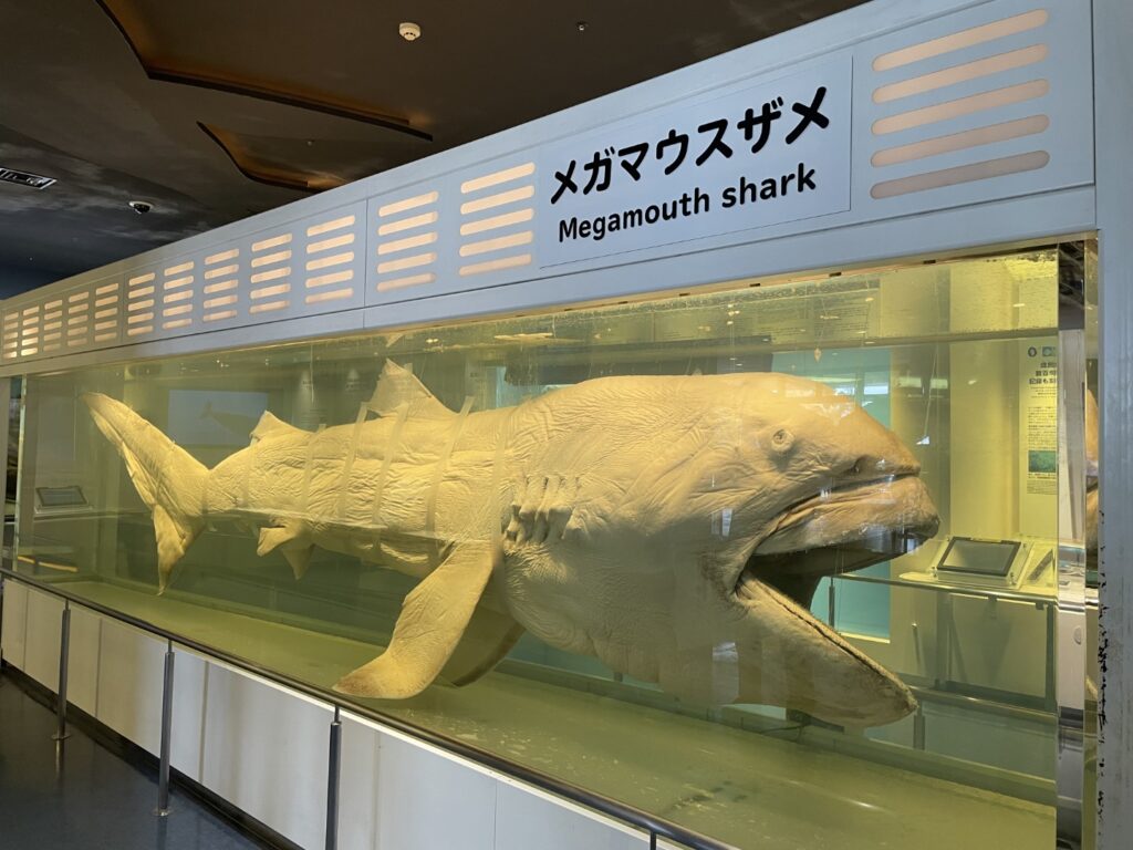 - マガマウスザメの標本: 非常に珍しい深海ザメ「マガマウスザメ」の実物標本。巨大な口を持つ特徴的な姿を間近で観察できます。