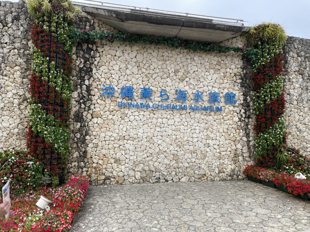 こちらも撮影スポット「沖縄美ら海水族館」の文字看板です