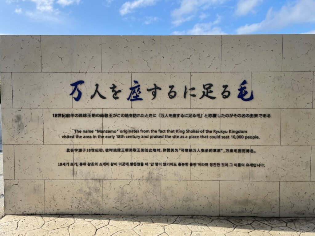 これは、沖縄の自然や文化を大切にする両陛下の訪問を称えるもので、万座毛の歴史における重要な一場面を象徴しています。観光の際には、これらの石碑をじっくり見学しながら、万座毛の歴史に思いを馳せるのもおすすめです。