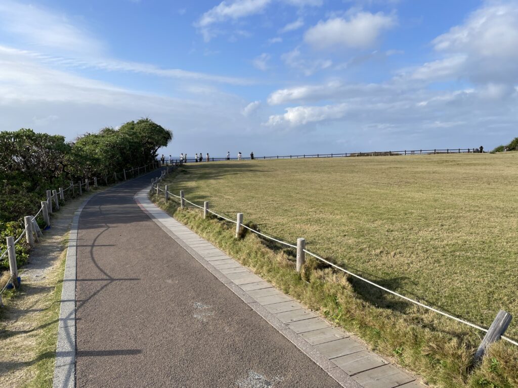 また万座毛の遊歩道は歩きやすく整備されており、広々とした芝生が広がる景色の中をゆったりと散策できます。