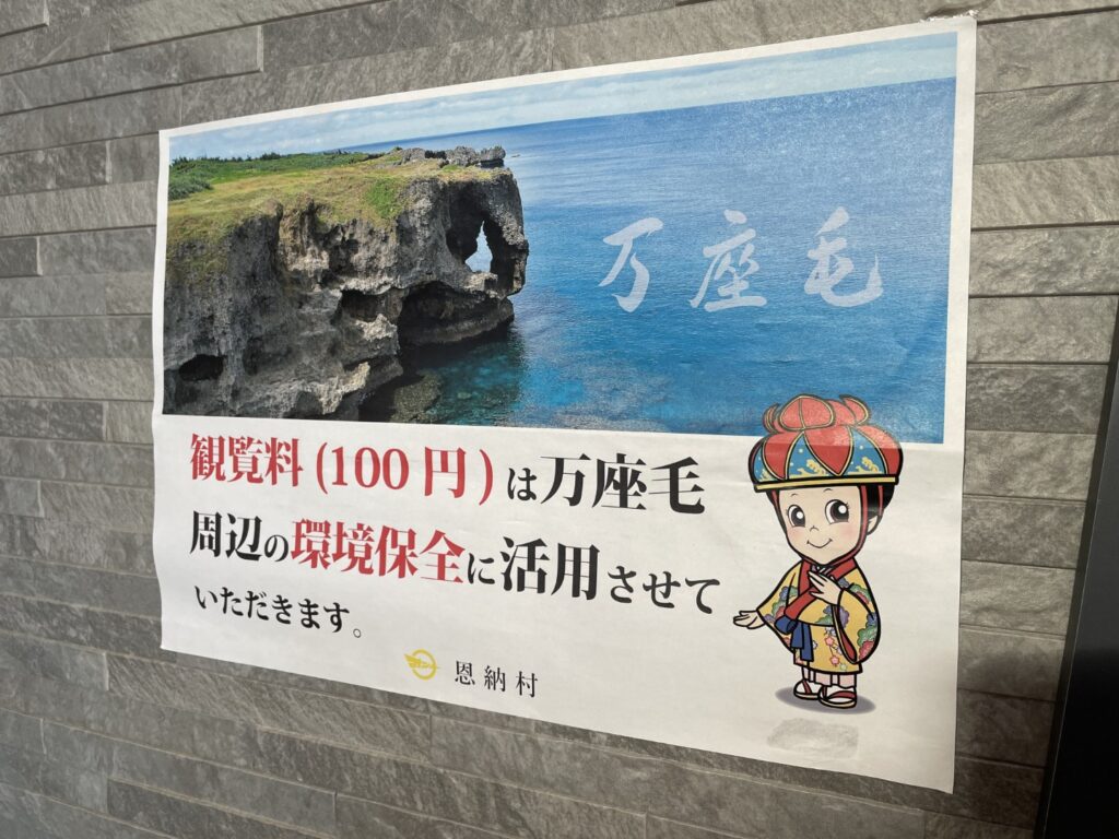万座毛の有料エリアに入るとすぐに、大きく「万座毛」と書かれた白い壁が現れます。