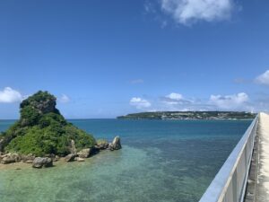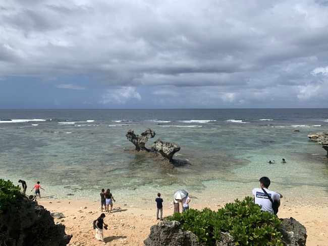 嵐のCMでも有名、ハートロックは島の入り口からはちょうど反対側にあります 古宇利島が有名になるきっかけにもなったこの場所、島に入ってから約10分くらいのティーヌ浜に位置しています。