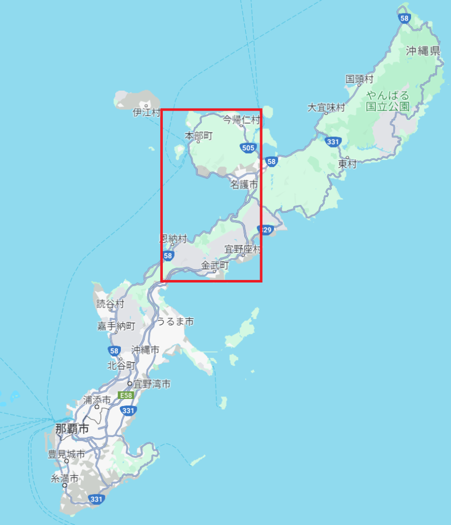 沖縄本島北部地区(本部町、今帰仁村、名護市、金武町、宜野座村、恩納村万座毛以北)