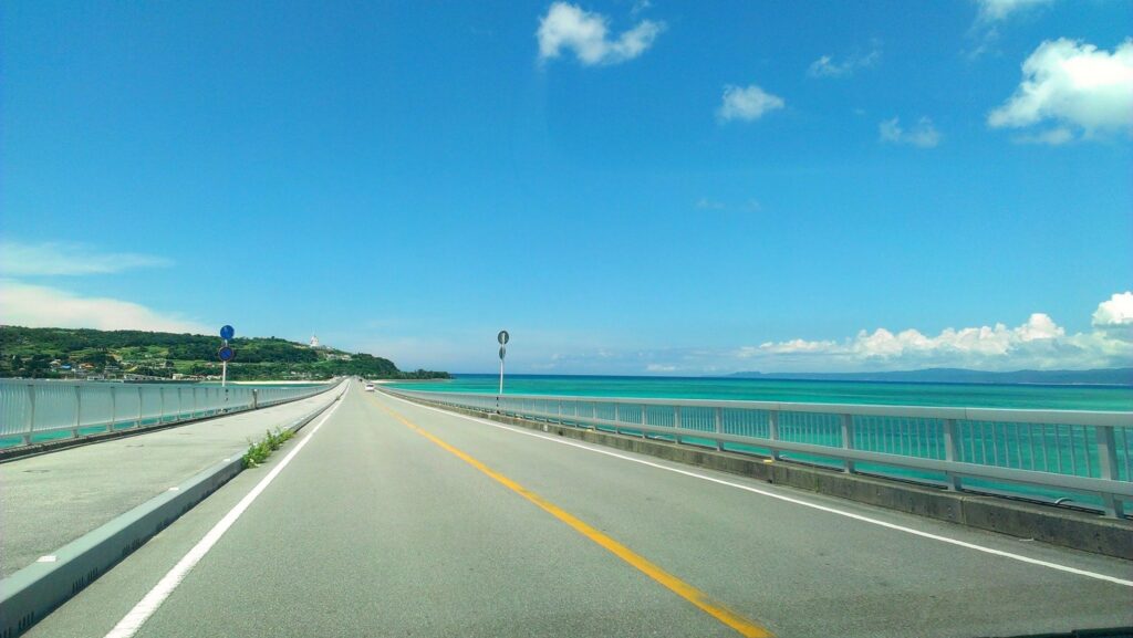 古宇利島に入る際に通る古宇利大橋は全長1960m、橋に入る際のエメラルドグリーン の海が一面に広がる光景はまさに絶景!思わず息を飲むほどです。