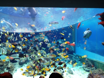 美ら海水族館で水槽の餌やりに遭遇